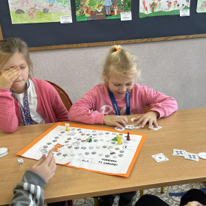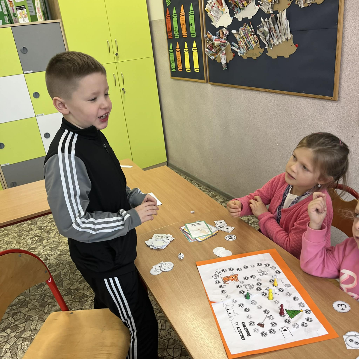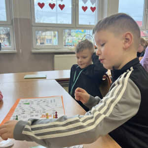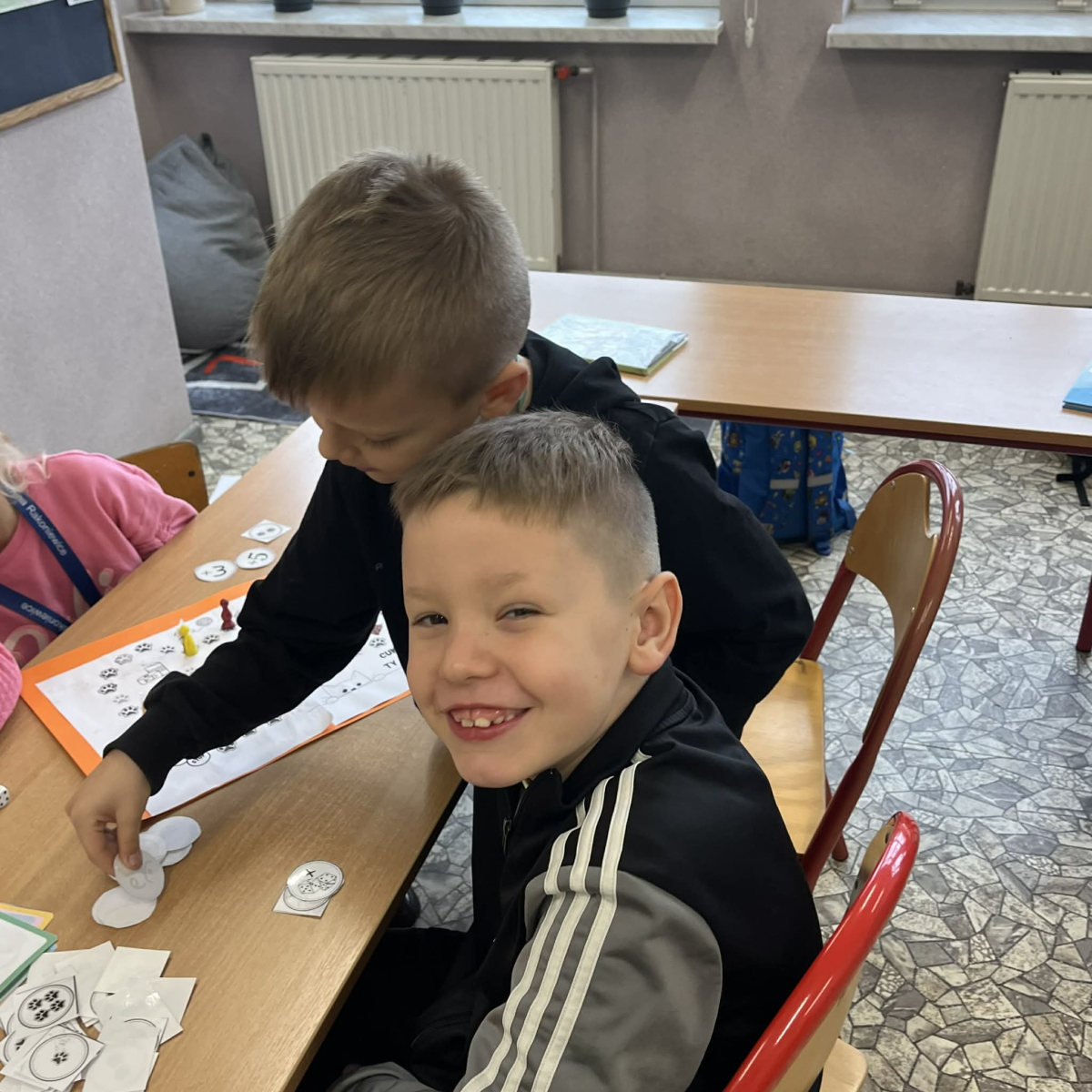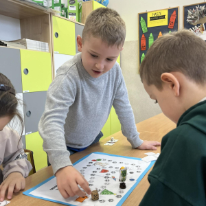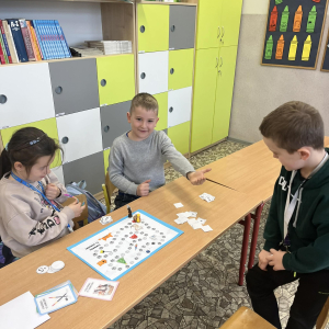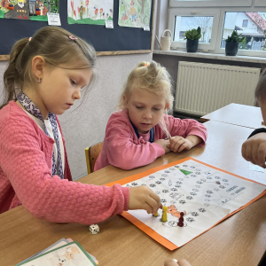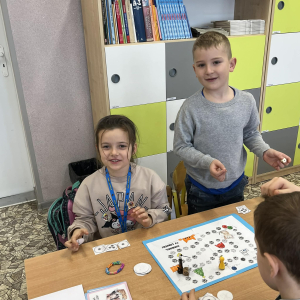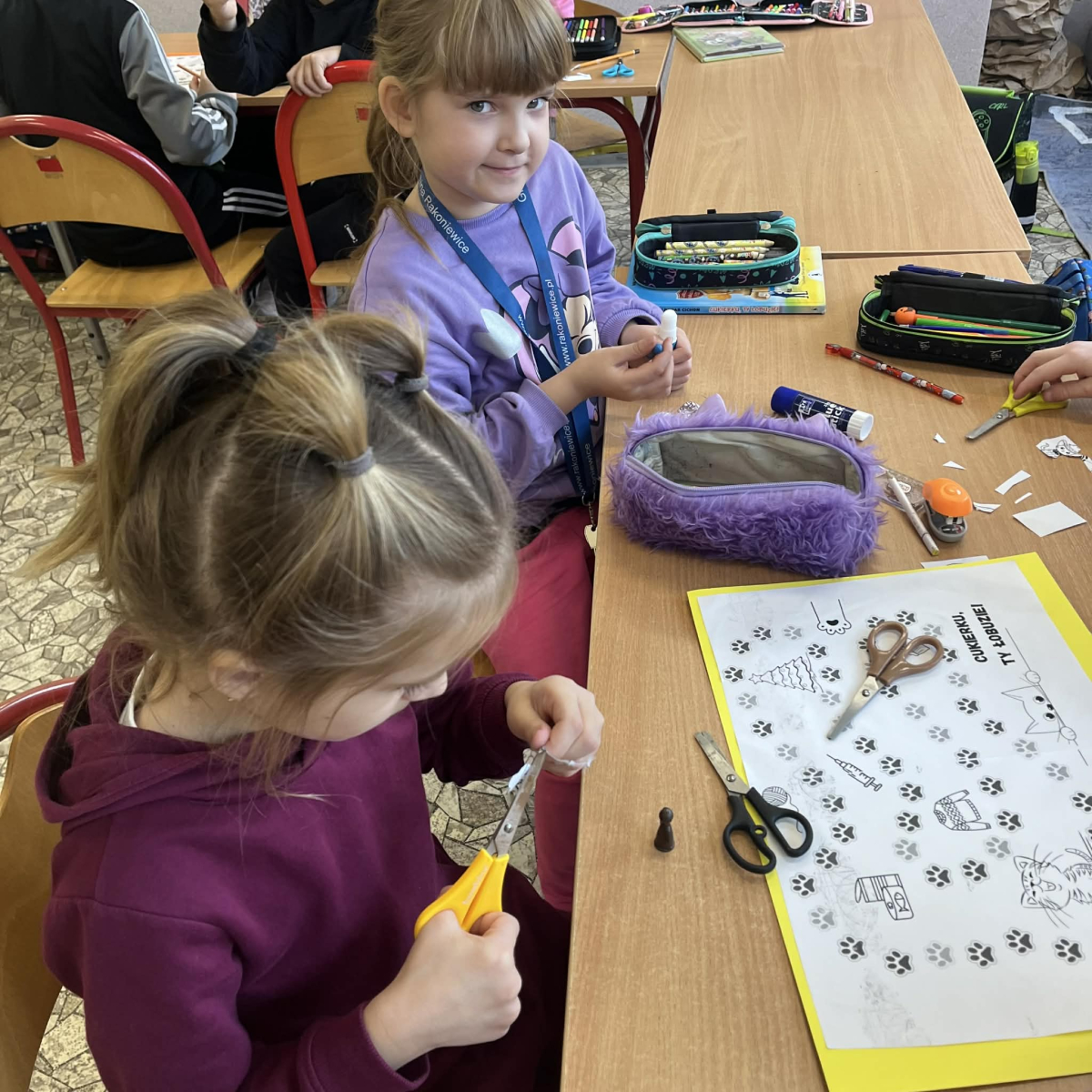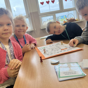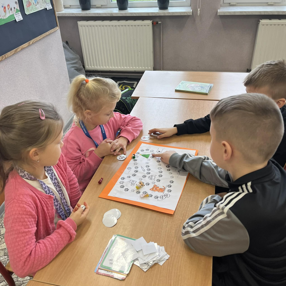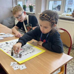 Podczas omawiania lektury „Cukierku, ty łobuzie” uczniowie klasy pierwszej przygotowali grę planszową, która pomogła im utrwalić treść książki i lepiej poznać przygody niesfornego kota Cukierka.
