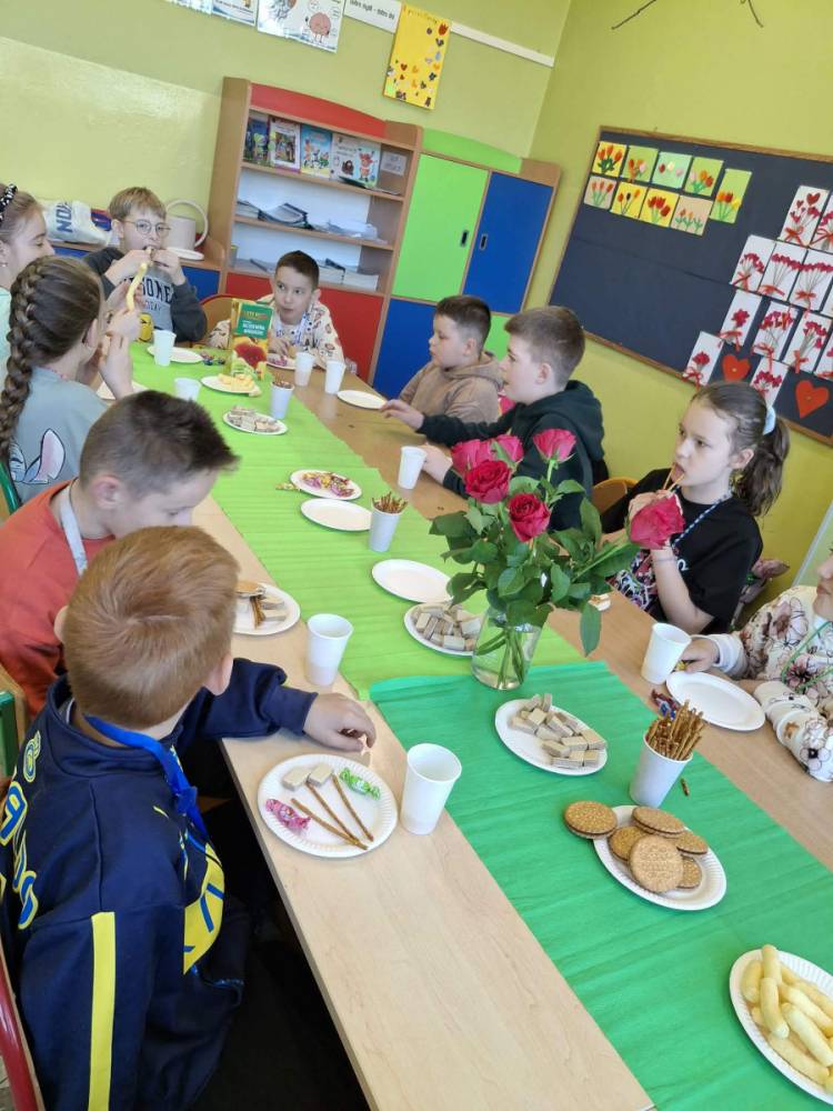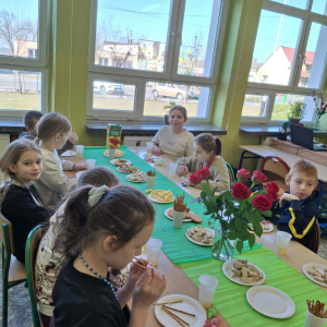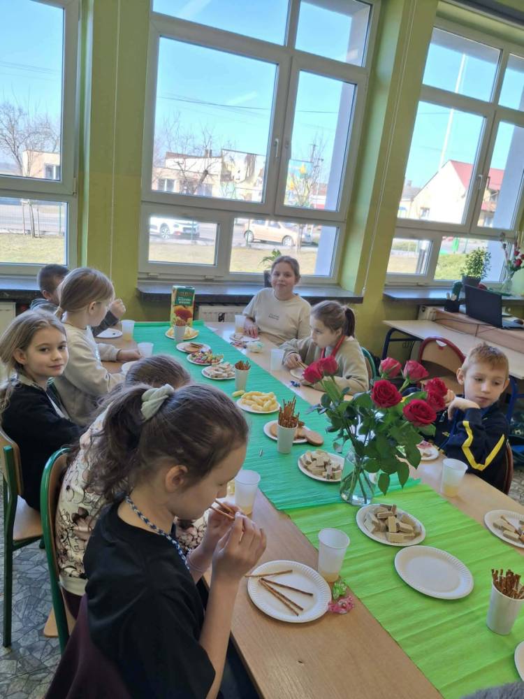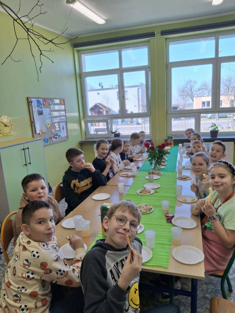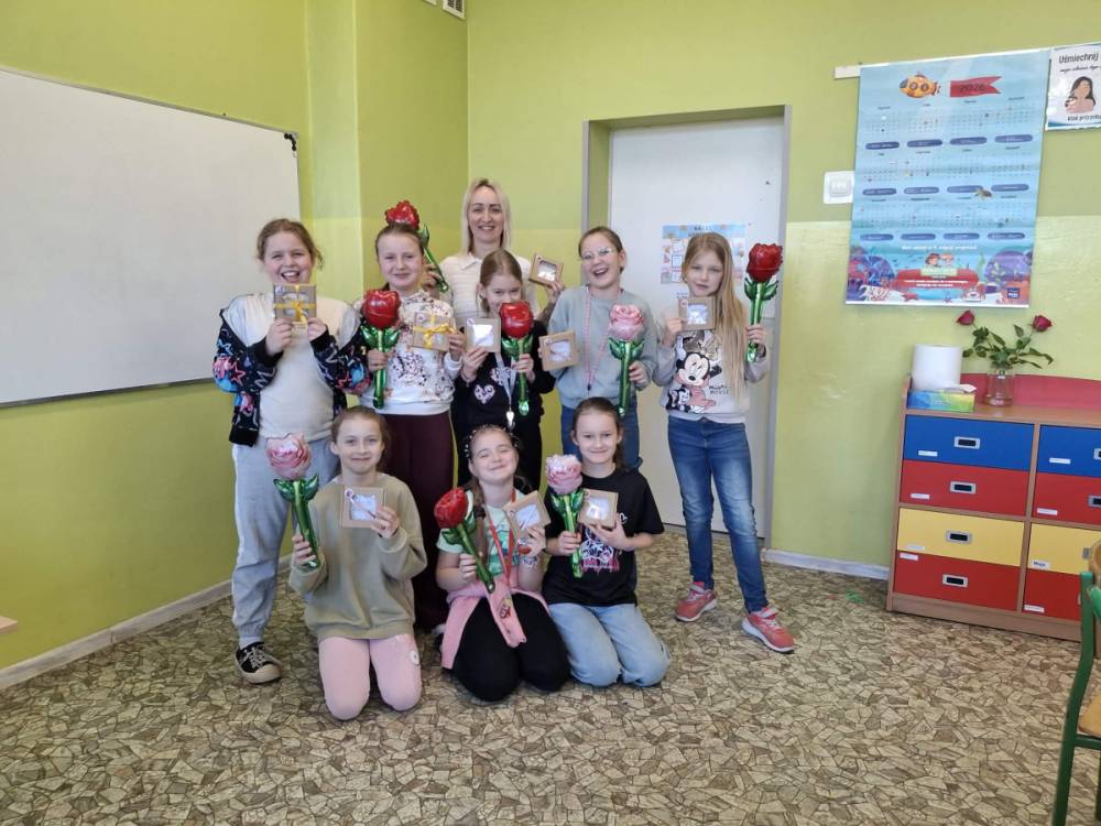 W klasie III odbyły się radosne obchody Dnia Kobiet. Chłopcy wręczali paniom oraz koleżankom różyczki i drobne upominki, składając serdeczne życzenia. Uczniowie świętowali przy poczęstunku. Panowała miła i radosna atmosfera. Chłopcy zachowywali się jak prawdziwi dżentelmeni, a wszyscy cieszyli się wspólną zabawą i życzliwością.