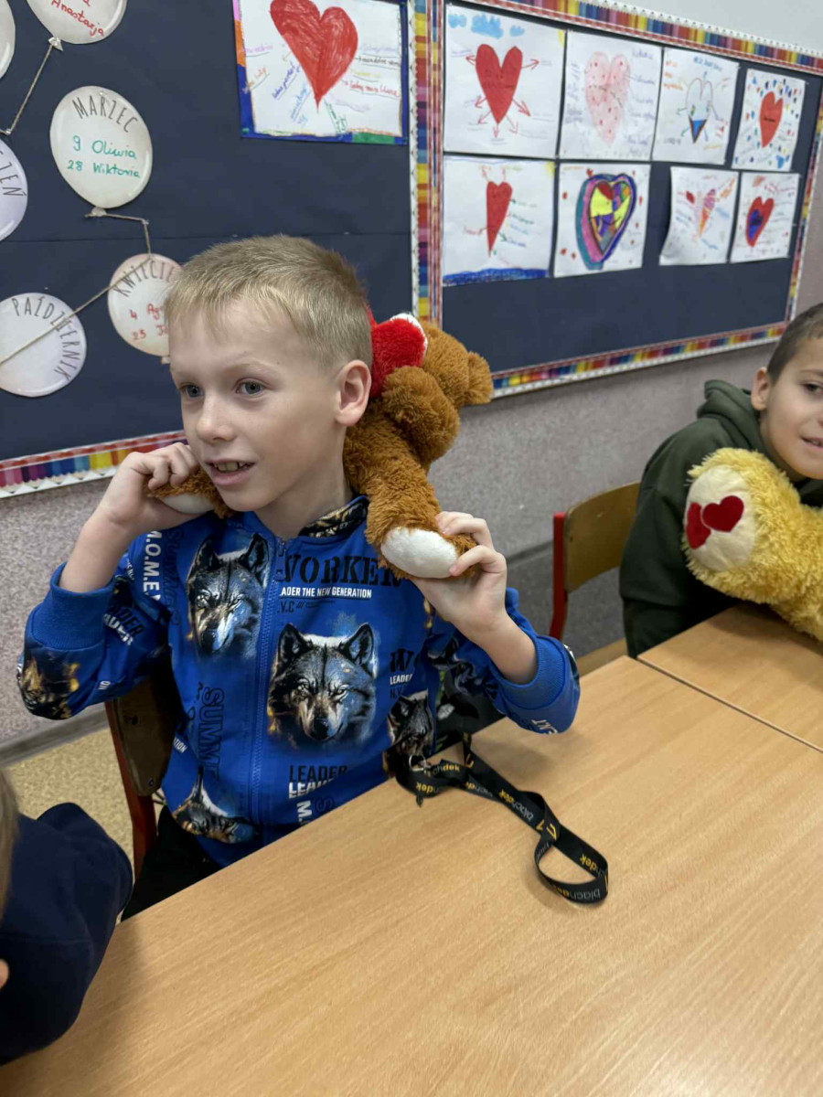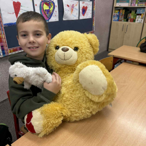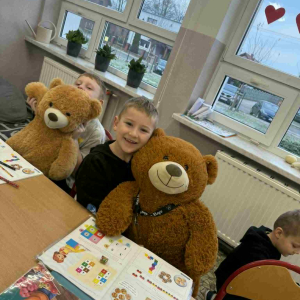 25 listopada w naszej szkole obchodziliśmy Dzień Pluszowego Misia – święto pełne uśmiechu, ciepła i pozytywnych emocji. Tego dnia uczniowie oraz przedszkolaki przyszli do szkoły ze swoimi ulubionymi pluszakami, które towarzyszyły im podczas zajęć i wspólnych zabaw.