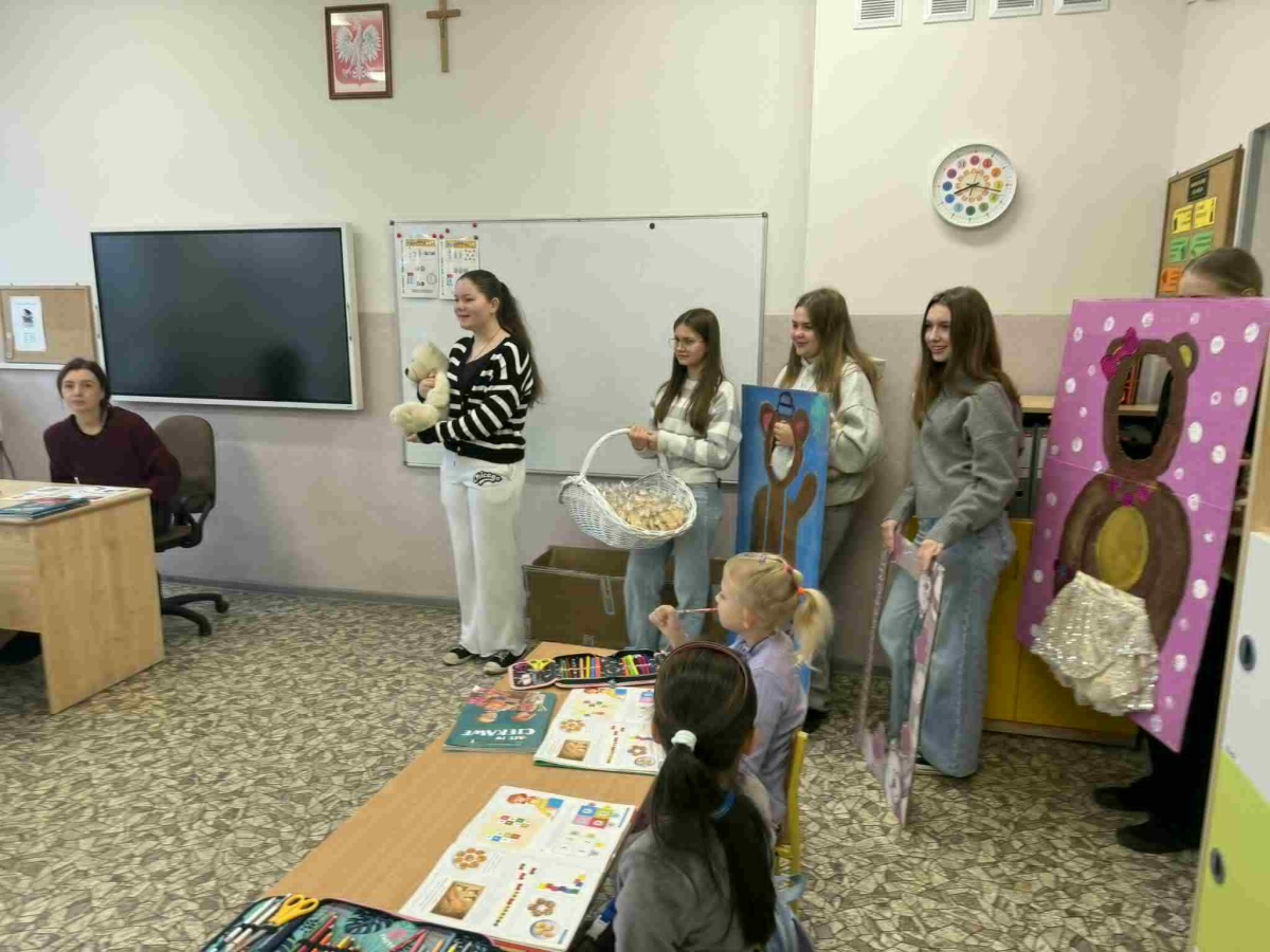 Samorząd Uczniowski przygotował dla wszystkich wyjątkową niespodziankę – każde dziecko otrzymało pyszne ciasteczko w kształcie misia, upieczone specjalnie na tę okazję. Słodki upominek sprawił najmłodszym ogromną radość i dodał wyjątkowego uroku całemu wydarzeniu.