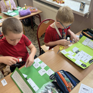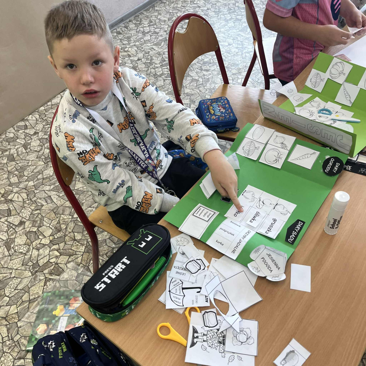 Uczniowie klasy I mieli okazję w kreatywny sposób połączyć naukę z zabawą, tworząc jesienne lapbooki. Każdy pierwszak przygotował własną książeczkę z informacjami o jesieni, drzewach, liściach, zwierzętach i zmianach zachodzących w przyrodzie o tej porze roku.