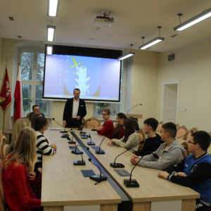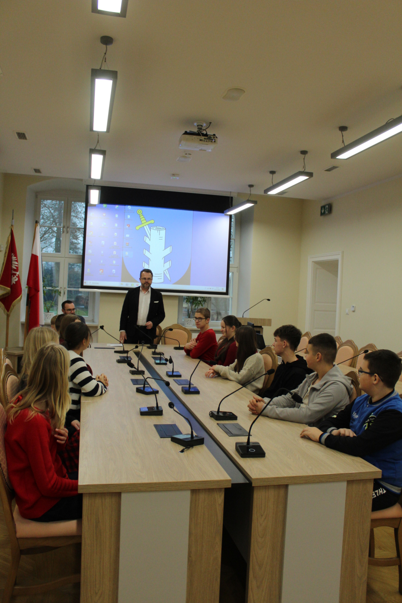 Dnia 5 XII 2025 r. w porze popołudniowej ósmoklasiści naszej Szkoły wzięli udział w lekcji dot. samorządu gminnego w Urzędzie Miasta i Gminy w Rakoniewicach. Zajęcia z WOS-u poprowadził pan Arkadiusz Pawłowski - zastępca burmistrza Rakoniewic. Prelegent opowiedział o organach gminy, zadaniach realizowanych przez magistrat oraz oprowadził grupę po Urzędzie. Młodzież szkolna miała wówczas okazje zapoznać się z pracą urzędniczą oraz poznać działanie Gminy "od podszewki". Lekcja trwała godzinę.