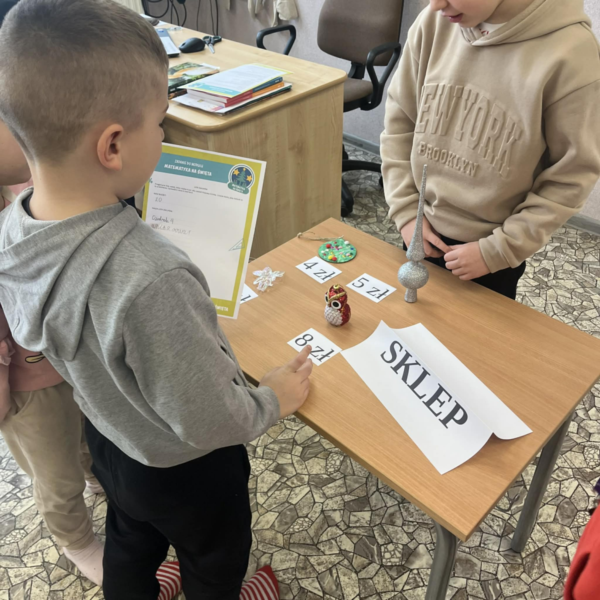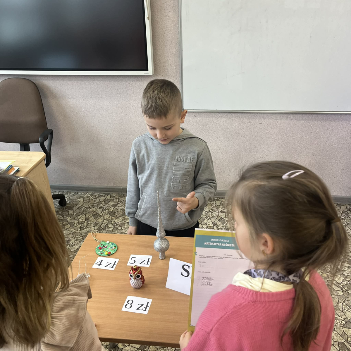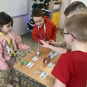 Podczas zajęć dzieci odkrywały, że matematyka towarzyszy nam również w przygotowaniach do świąt. Pracując w grupach, planowały świąteczne wydarzenie, uwzględniając określony budżet. Uczniowie wykorzystywali nowoczesne technologie, uczyli się planowania wydatków oraz podejmowania wspólnych decyzji. Zajęcia sprzyjały także rozwijaniu przedsiębiorczości oraz kompetencji społecznych, takich jak współpraca, komunikacja i odpowiedzialność.