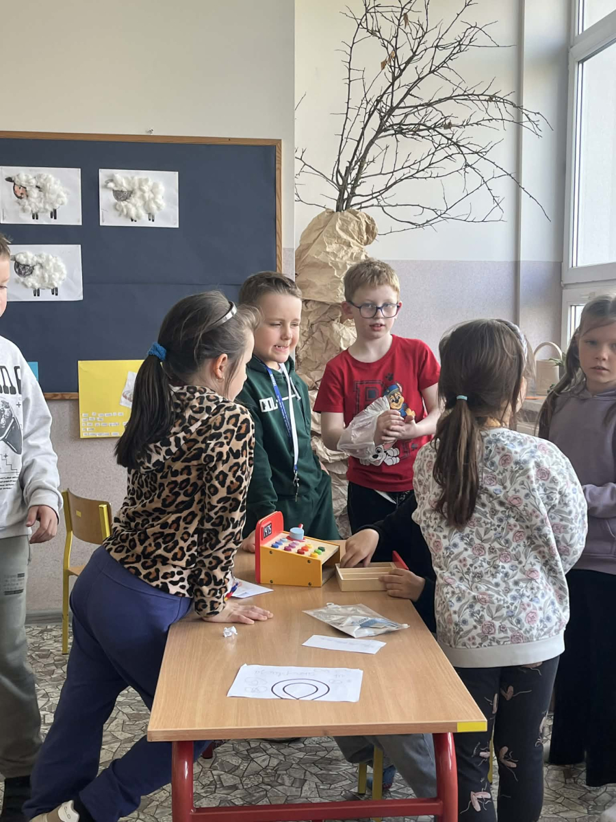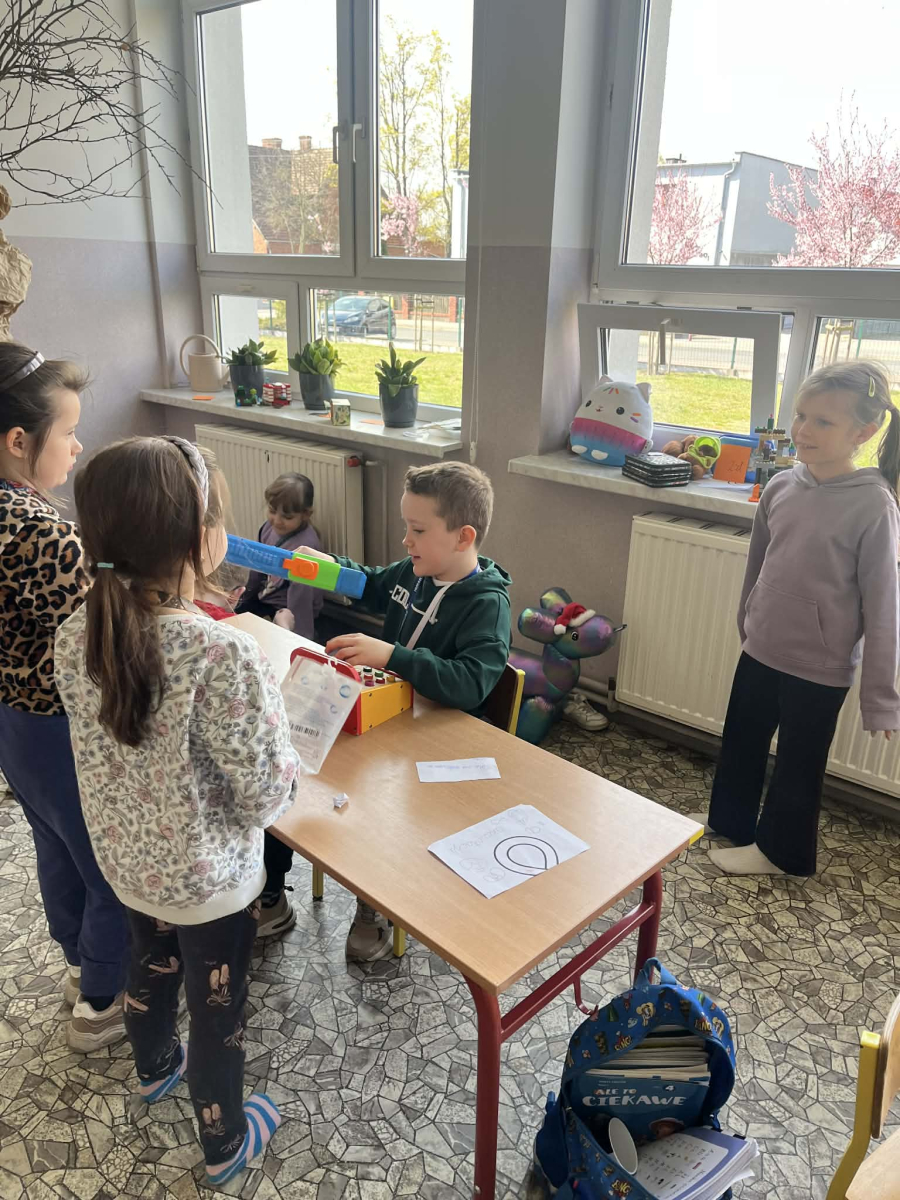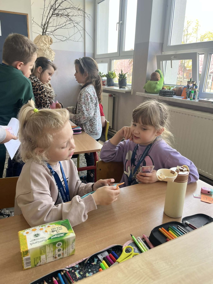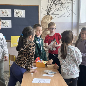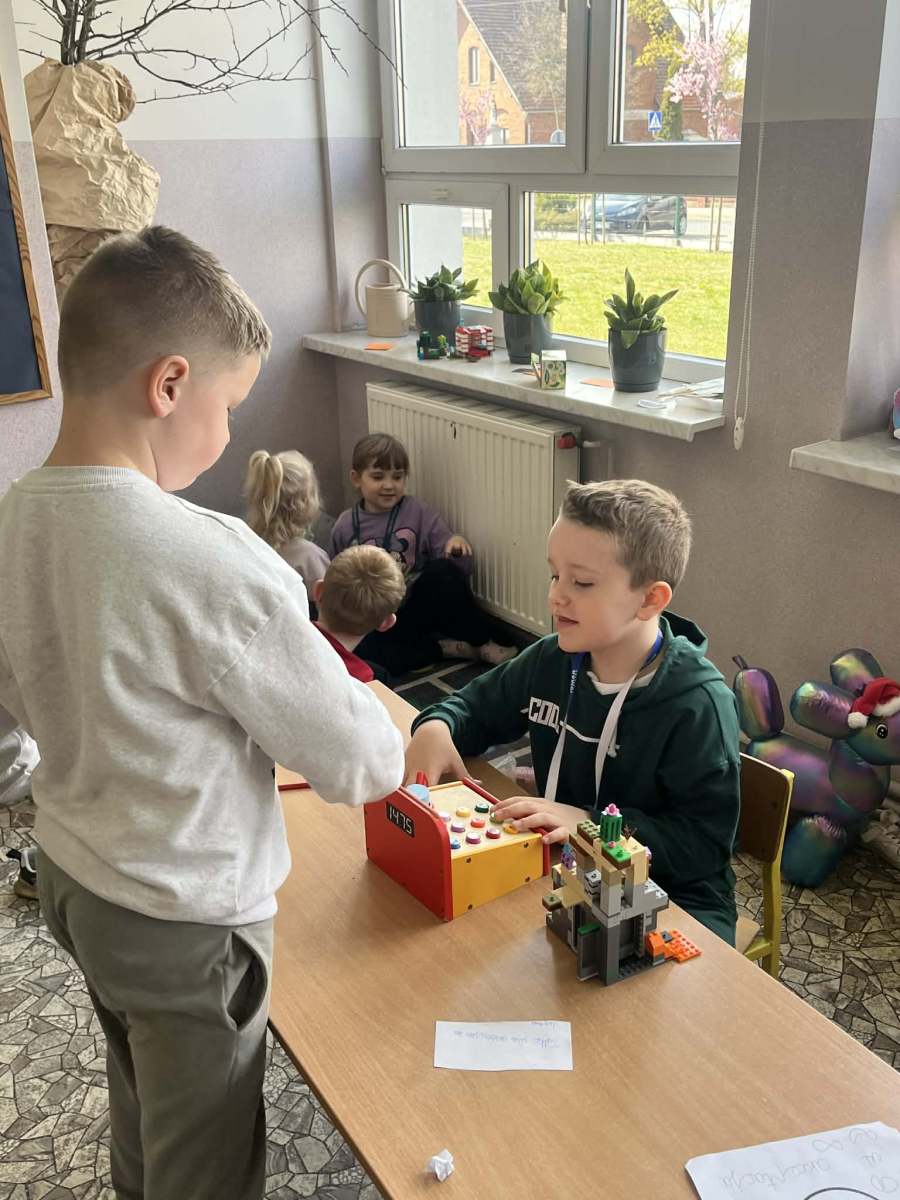 Podczas zajęć sala lekcyjna zamieniła się w mały sklep. Dzieci wcielały się w role sprzedawców i klientów, ucząc się rozpoznawania nominałów monet i banknotów oraz przeliczania odpowiednich kwot. Uczniowie z dużym zaangażowaniem dokonywali zakupów, wydawali resztę i podejmowali decyzje dotyczące wyboru produktów.