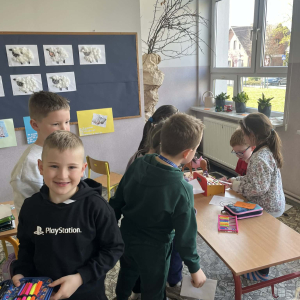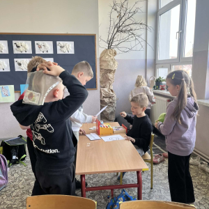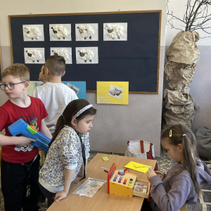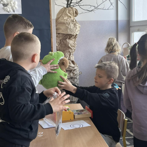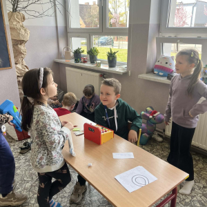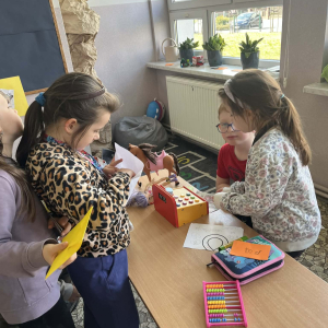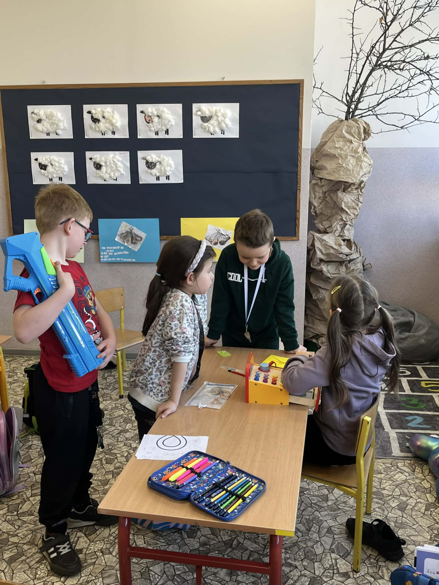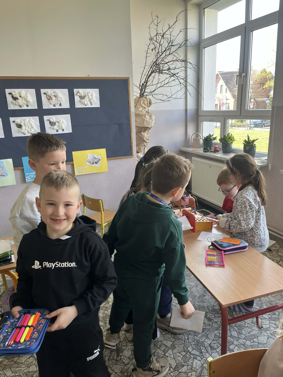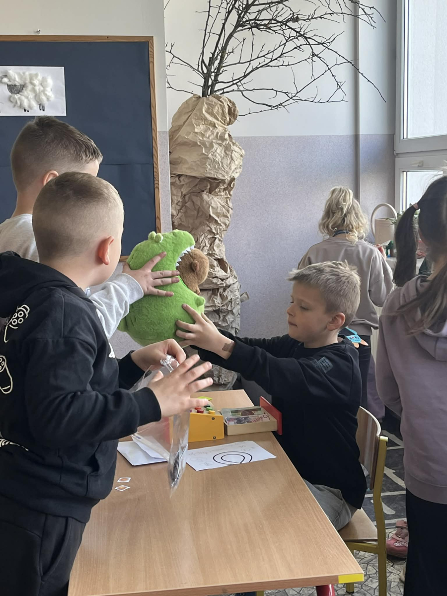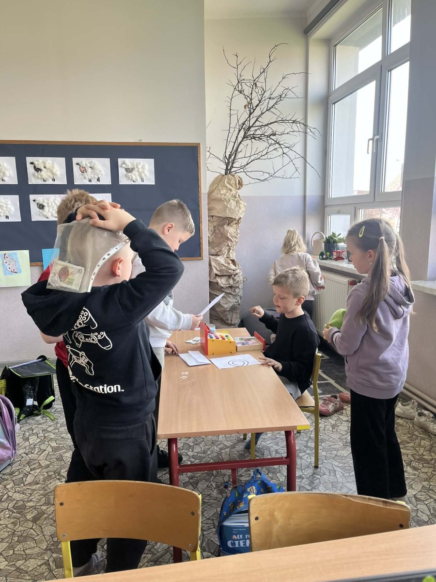 Uczniowie klasy pierwszej wzięli udział w zajęciach edukacyjnych pod hasłem „Pierwsze kroki w świecie zakupółw”. Celem lekcji było rozwijanie umiejętności matematycznych oraz nauka praktycznego posługiwania się pieniędzmi w codziennych sytuacjach.
