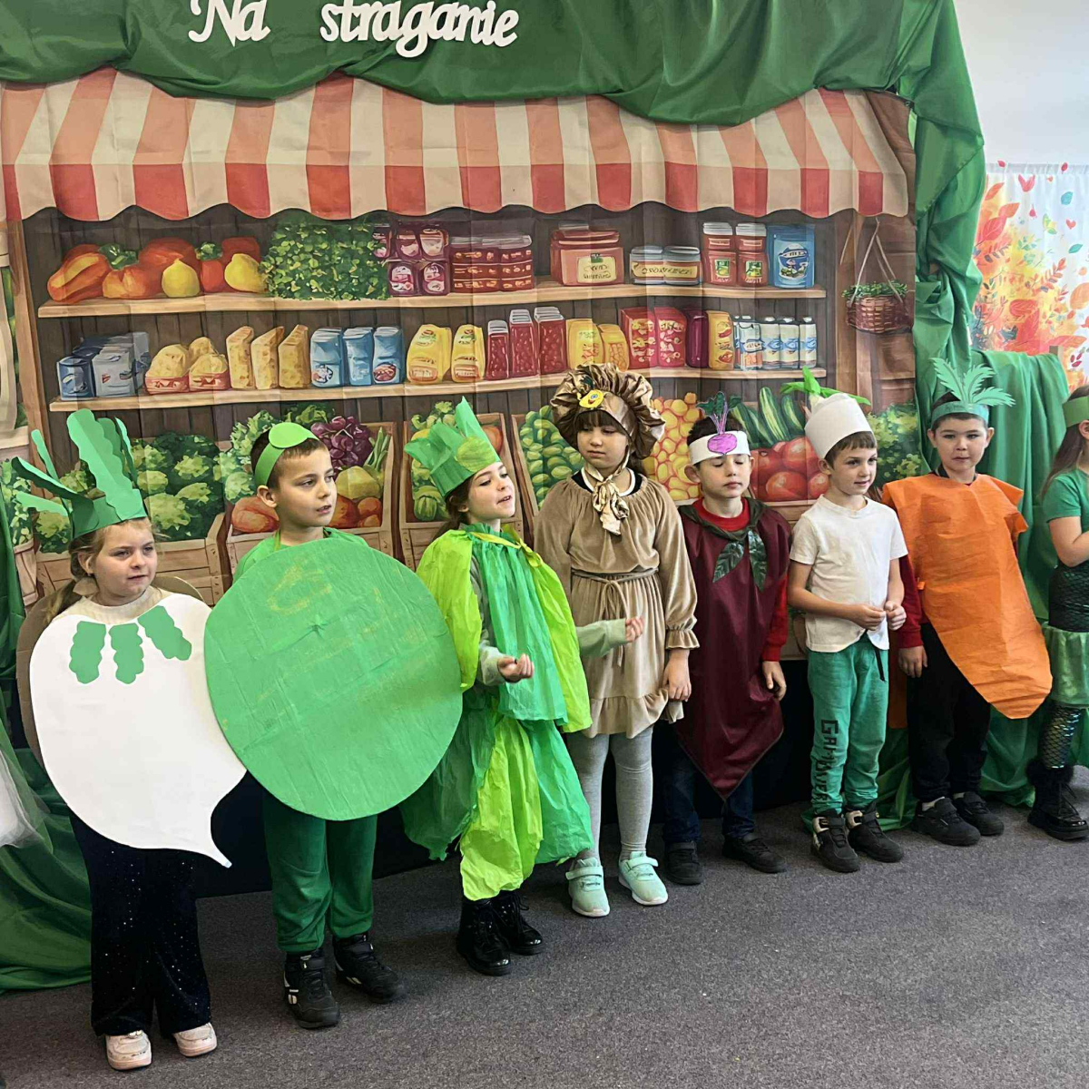 Występ pełen był kolorów, jesiennych motywów i radosnych piosenek. Dzieci zaprezentowały również znany wiersz Jana Brzechwy „Na straganie”, wcielając się w role warzywnych bohaterów z ogromnym zaangażowaniem i humorem.