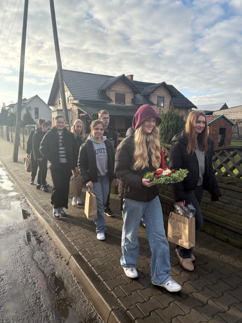 Podczas spotkań nie zabrakło ciepłych życzeń, serdecznych rozmów oraz świątecznych upominków. Uczniowie przygotowali stroiki i pierniki, które stały się miłym symbolem pamięci i życzliwości. Obdarowani z dużą radością i wzruszeniem przyjmowali wizyty, a na zakończenie serdecznie dziękowali za poświęcony czas i okazane serce.