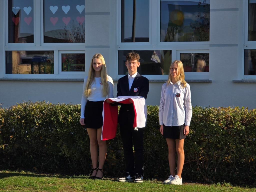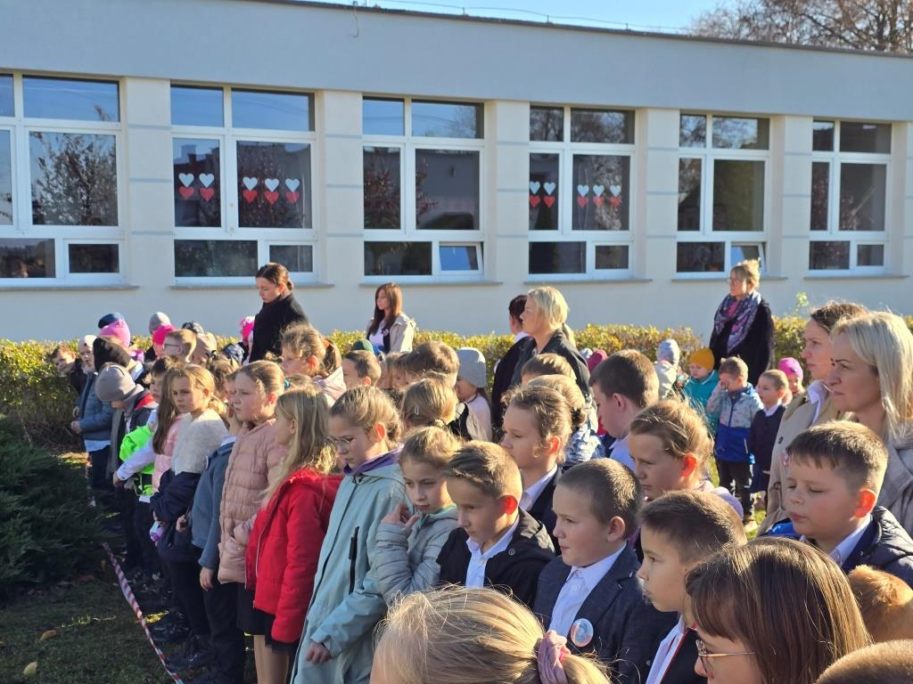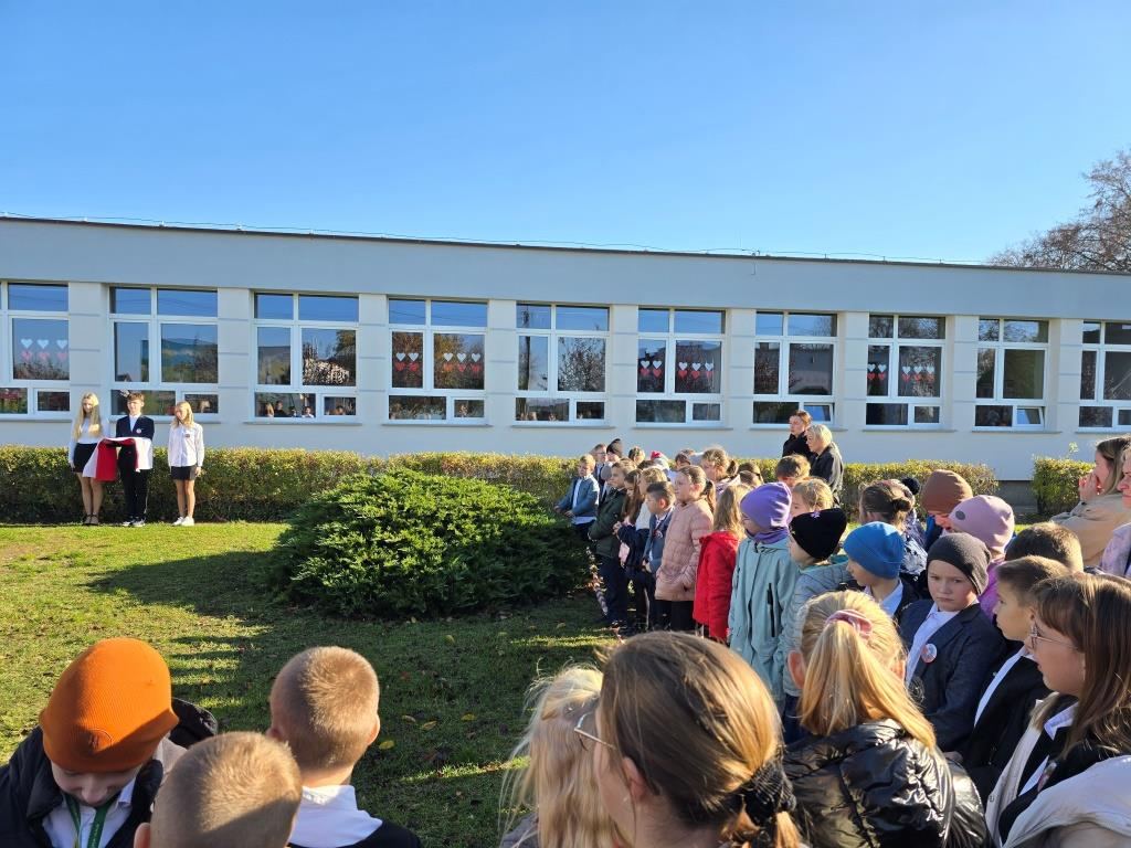 W piątek, 7 listopada 2025 roku, cała społeczność naszej szkoły zebrała się, aby uczcić Narodowe Święto Niepodległości. Uroczystość rozpoczęła się od uroczystego wciągnięcia flagi państwowej na maszt oraz wspólnego odśpiewania „Mazurka Dąbrowskiego” w ramach ogólnopolskiej akcji „Szkoła do hymnu”.