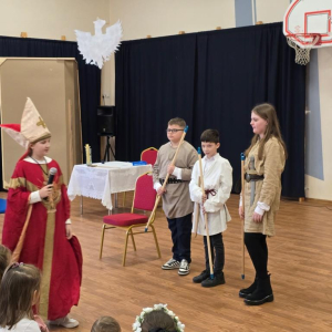 Na zakończenie akademii p. Jakub Mrozek, pomysłodawca i autor scenariusza, podkreślił znaczenie tegorocznych obchodów – w roku 2025 przypada bowiem tysiąclecie pierwszej koronacji królewskiej w Polsce.