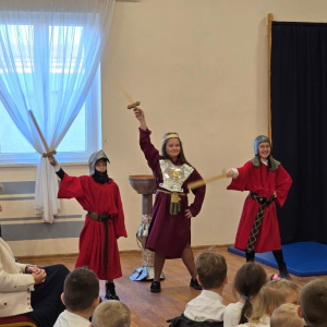 Widzowie przenieśli się w czasie do początków naszej państwowości – od legend o Lechu, Czechu i Rusie, przez chrzest Polski i zwycięstwo pod Cedynią, aż po zjazd gnieźnieński i koronację Bolesława Chrobrego w roku 1025. Każda scena była barwna, pełna emocji i humoru, a jednocześnie niosła ważne historyczne przesłanie.