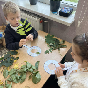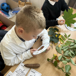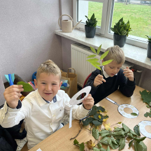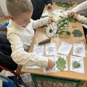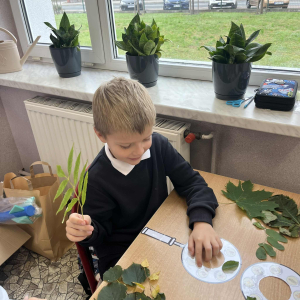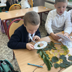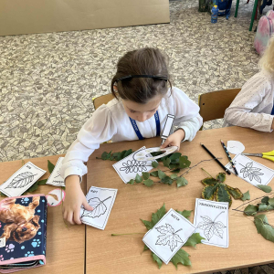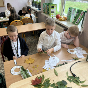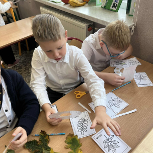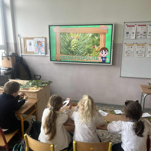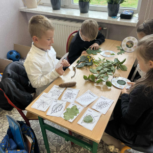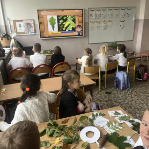 Uczniowie klasy I podczas zajęć przyrodniczych mieli okazję poznawać i rozpoznawać liście drzew. W klasie powstał mały „kącik przyrody” — dzieci z zainteresowaniem oglądały liście przez lupy i porównywały je z ilustracjami w atlasach przyrodniczych.