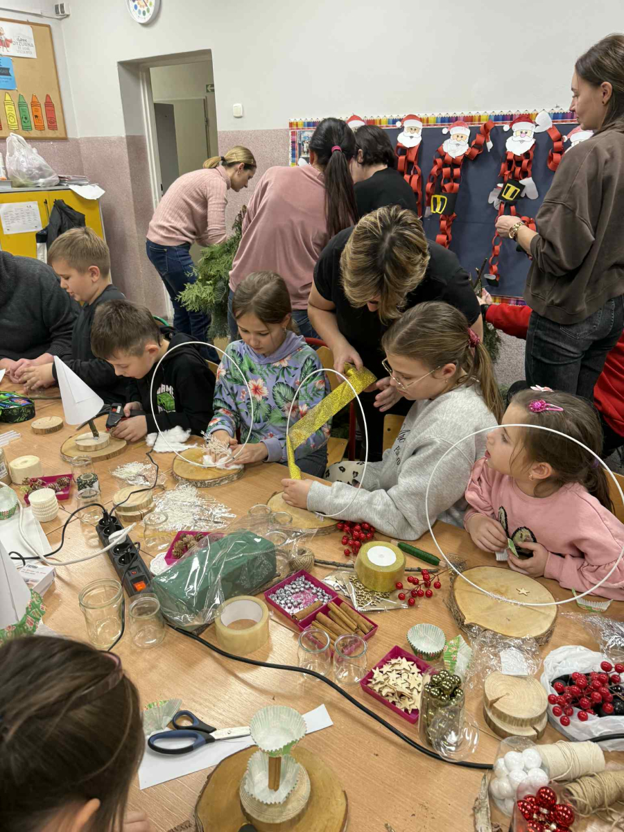 W przedświątecznej atmosferze w naszej szkole odbyły się wyjątkowe warsztaty świąteczne dla rodziców klas I i II, które połączyły twórczą aktywność z ideą niesieni pomocy. Spotkanie było okazją do wspólnego spędzenia czasu, rozwijania kreatywności oraz zaangażowania się w inicjatywę charytatywną.