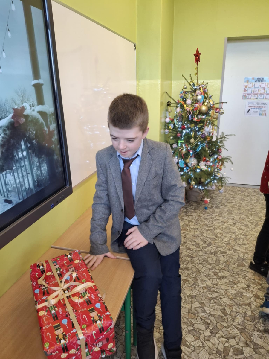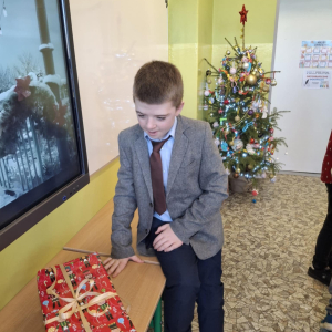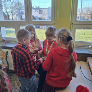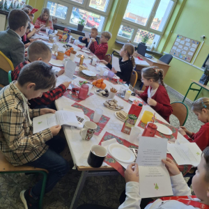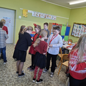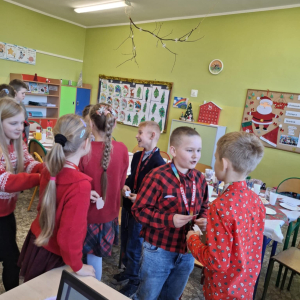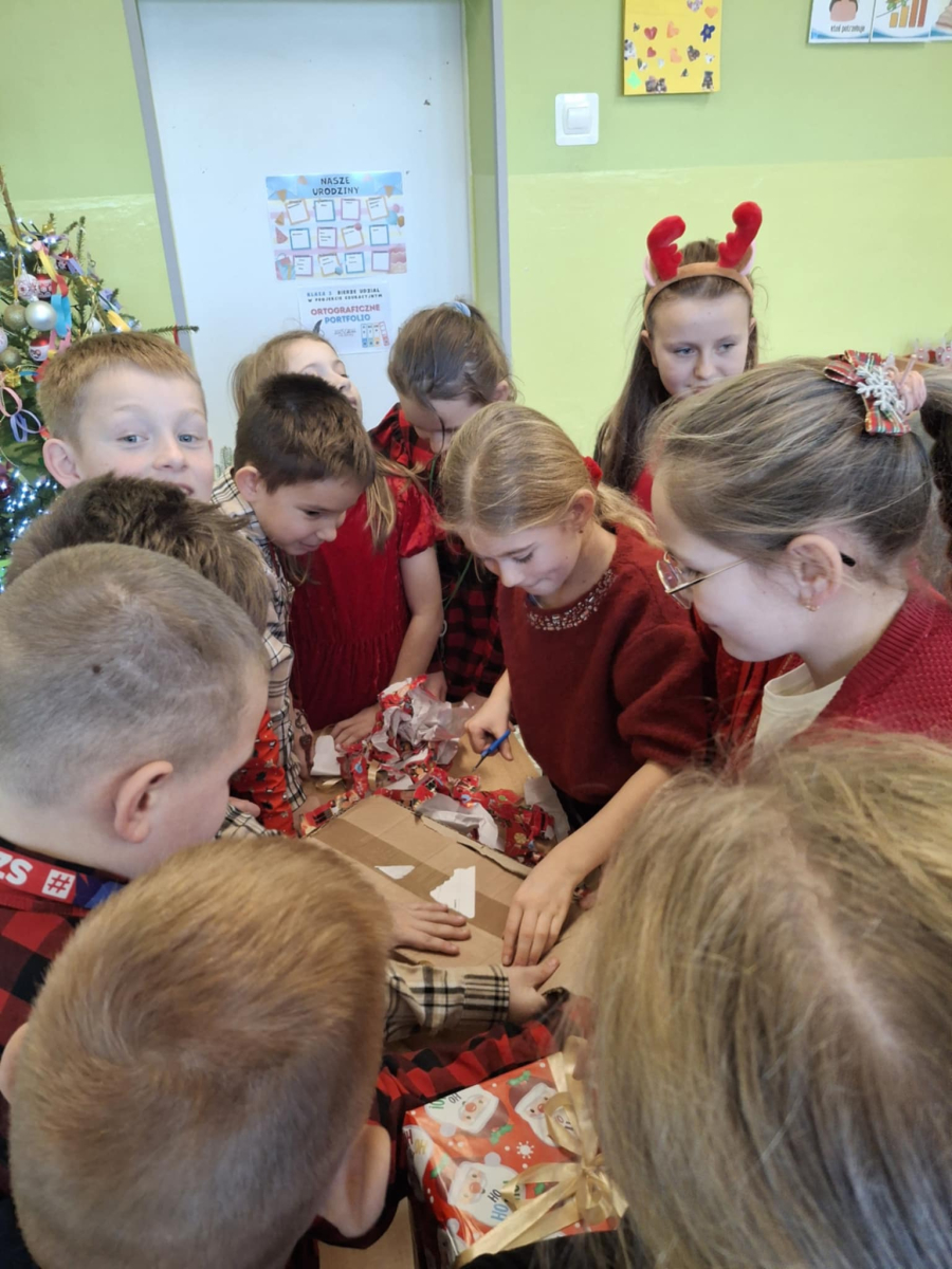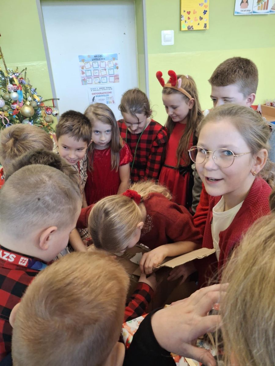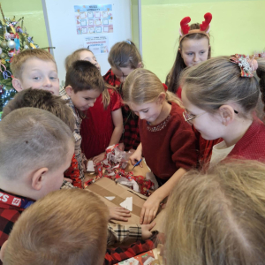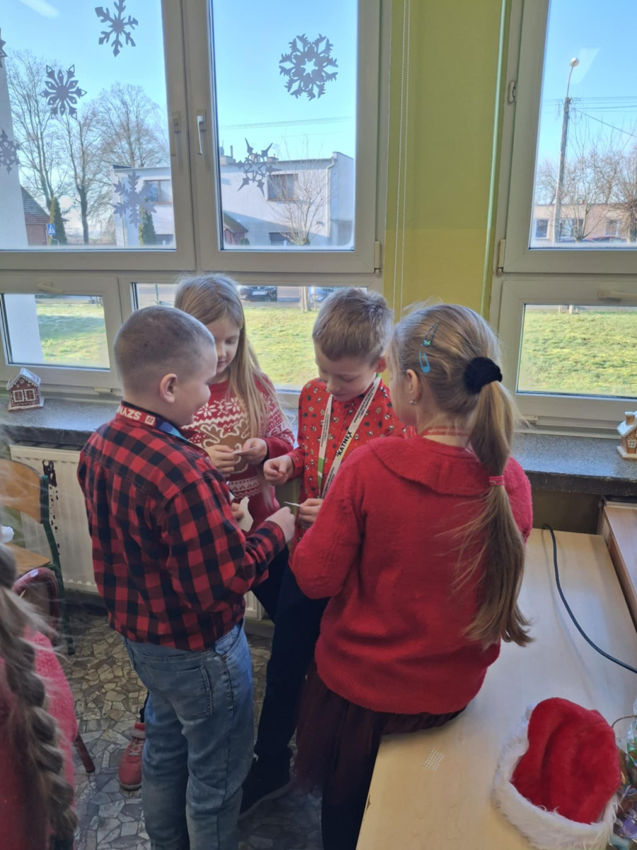 19 grudnia w klasie 3 odbyła się wyjątkowa, pełna ciepła wigilia klasowa. Uczniowie wspólnie dzielili się opłatkiem, składając sobie serdeczne życzenia świąteczne. Dzieci z radością otrzymały świąteczne prezenty, które wywołały wiele uśmiechów.