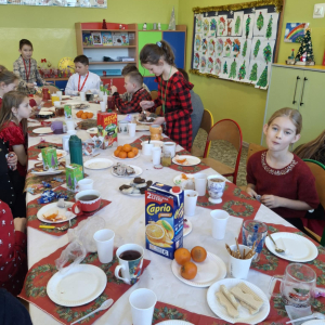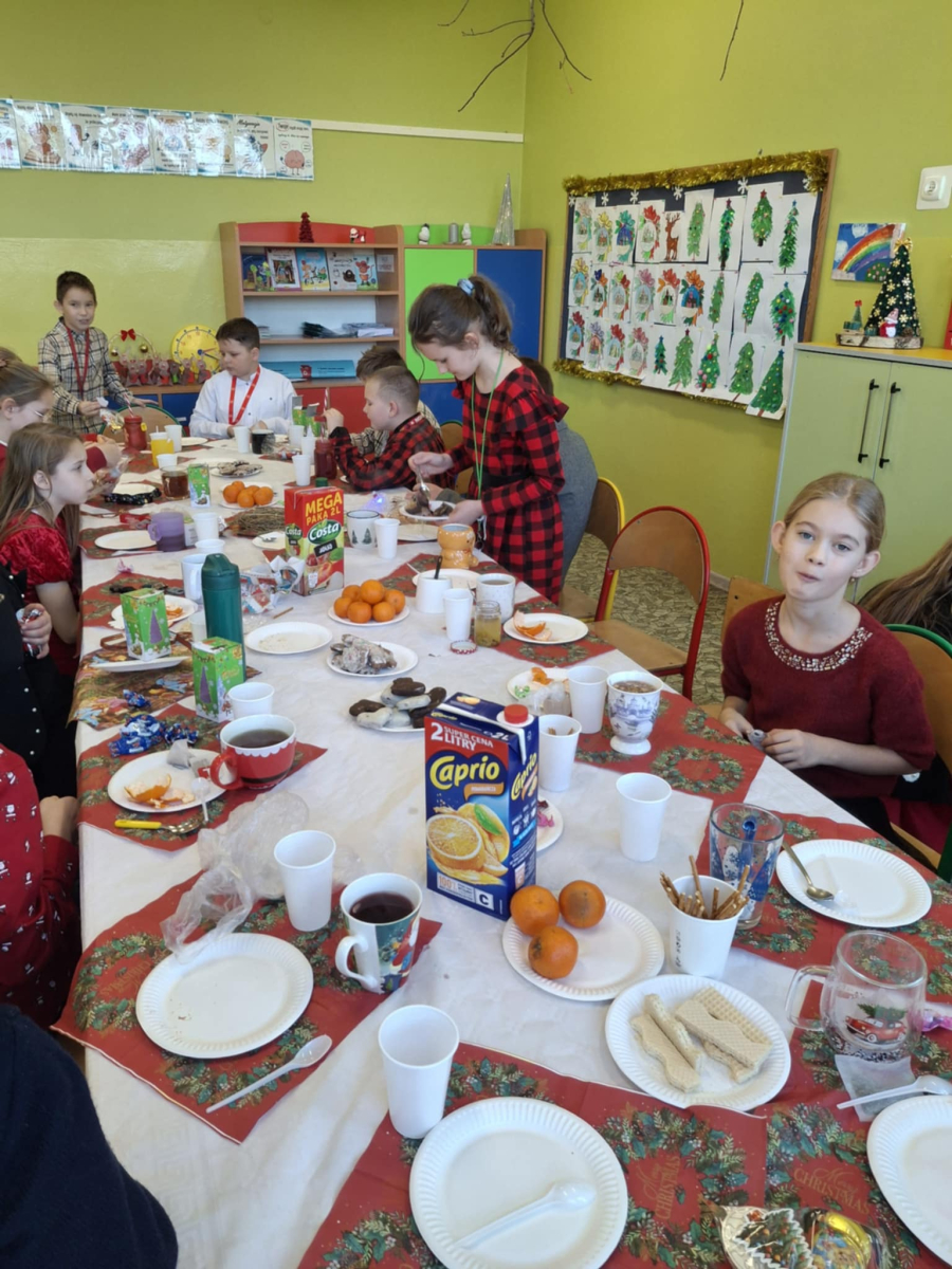 Podczas spotkania nie zabrakło także świątecznego poczęstunku, a po nim odbyło się wspólne śpiewanie kolęd, które wprowadziło wszystkich w radosny, bożonarodzeniowy nastrój. Spotkanie było okazją do integracji oraz wspólnego przeżywania magii świąt.