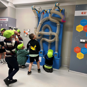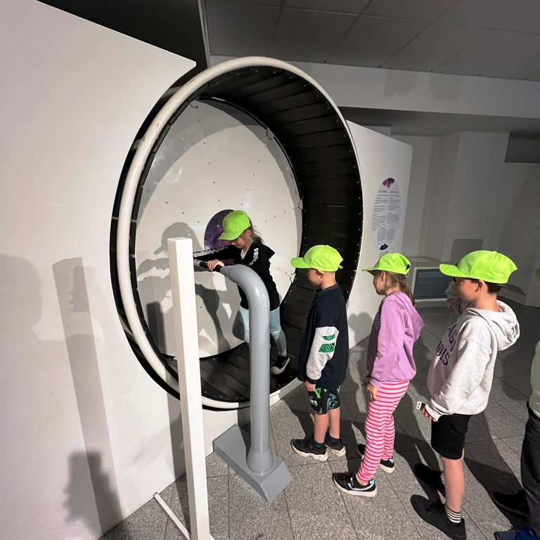 Na zakończenie odwiedziliśmy Centrum Nowoczesności Młyn Wiedzy – niezwykłe miejsce, w którym nauka spotyka się z zabawą. Dzieci z entuzjazmem odkrywały interaktywne wystawy, eksperymentowały i poznawały prawa fizyki, biologii oraz techniki. Ogromne wrażenie zrobiło na nich wahadło Foucaulta oraz wystawy poświęcone ludzkim zmysłom i wynalazkom.