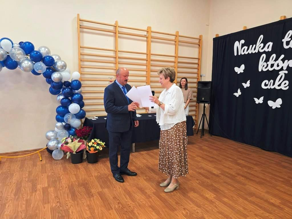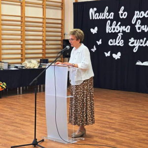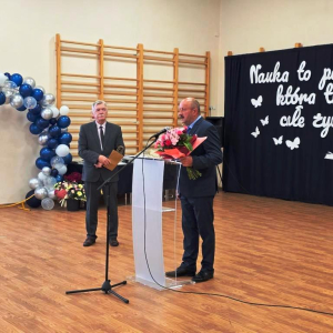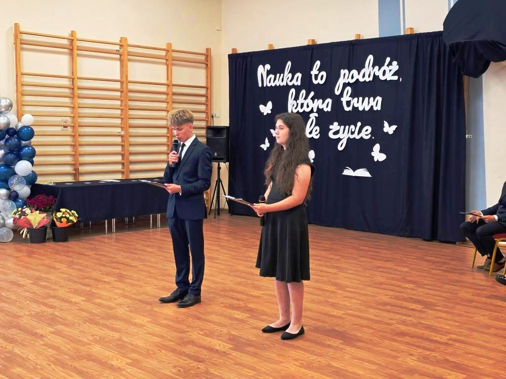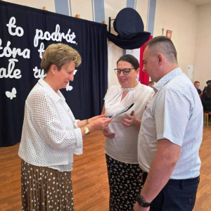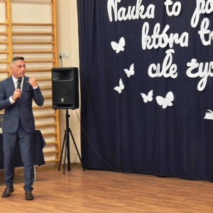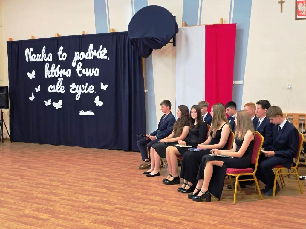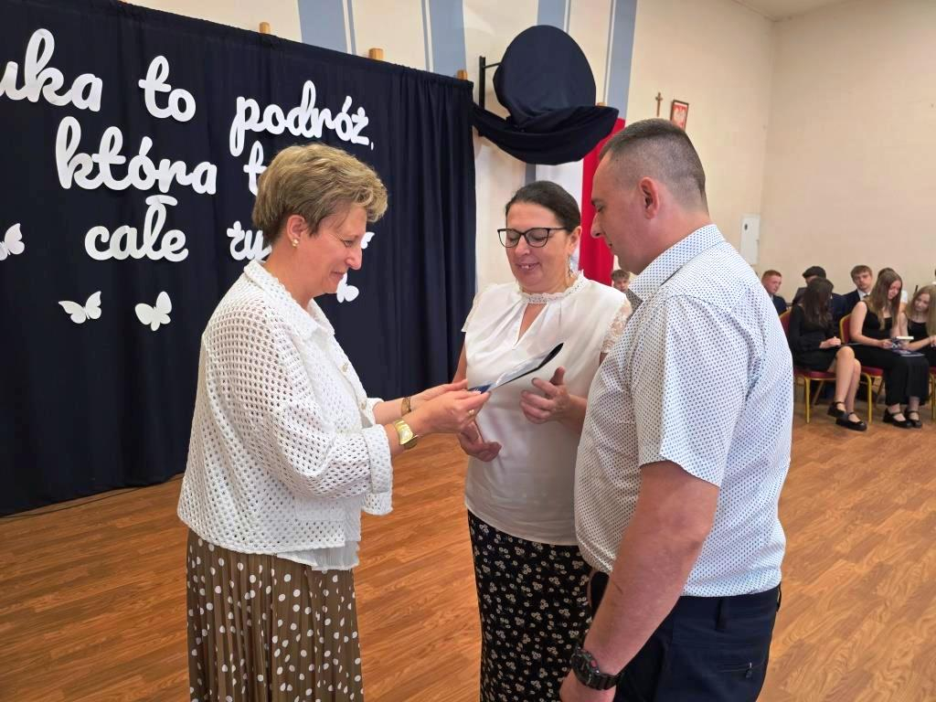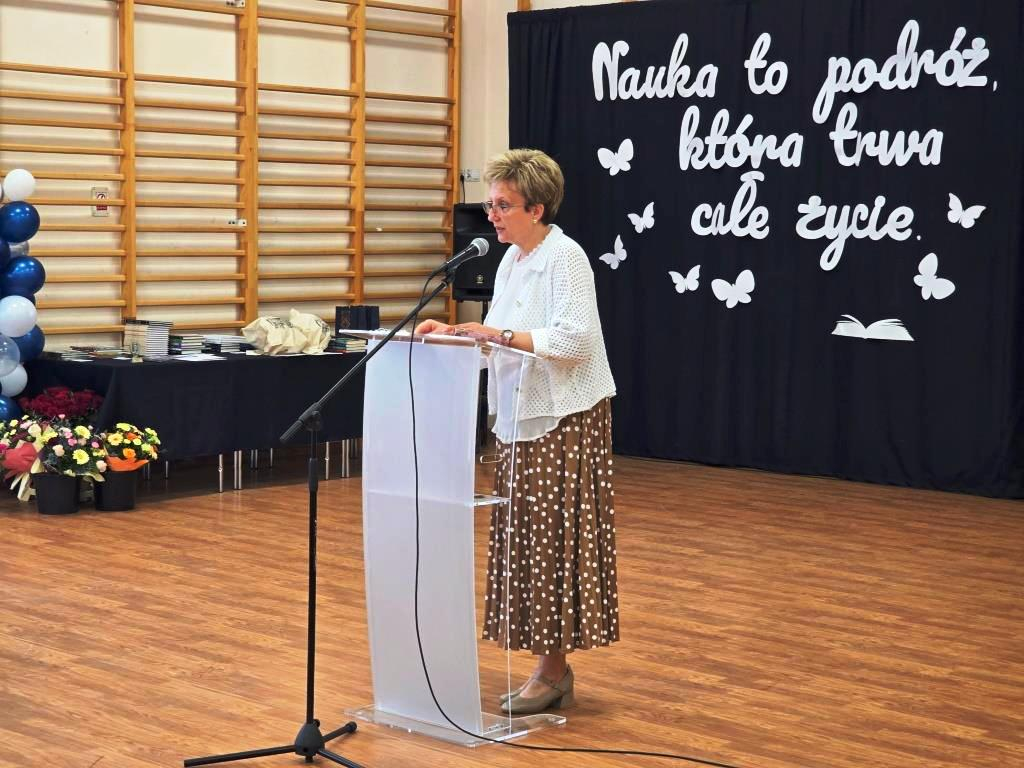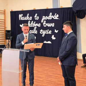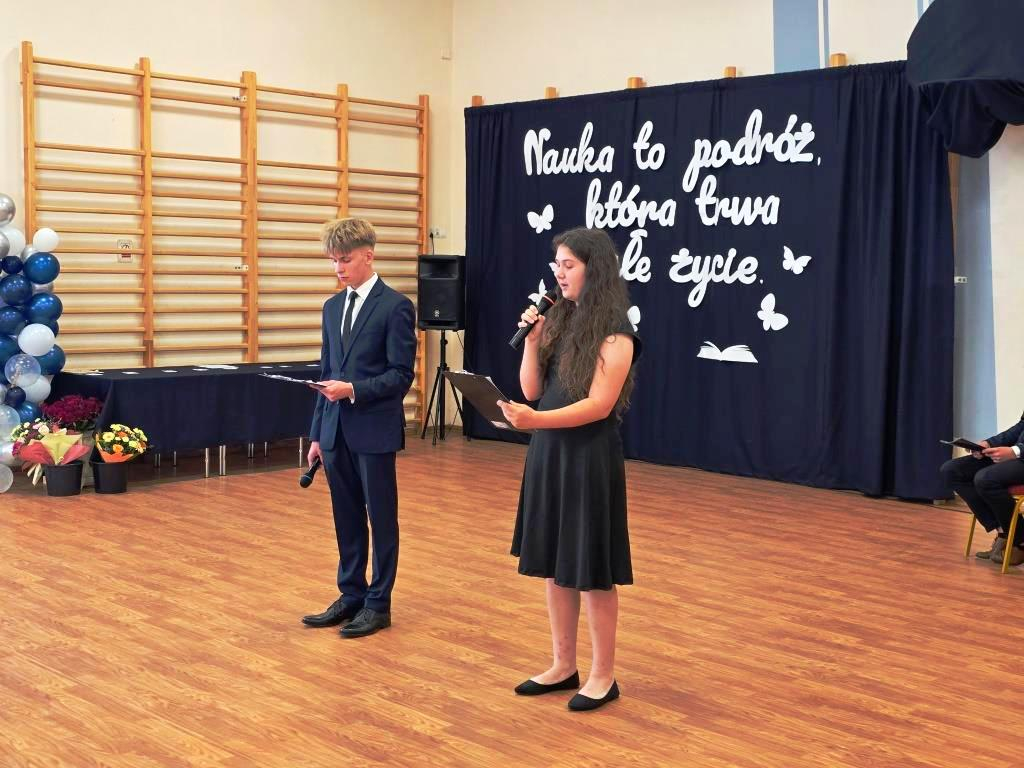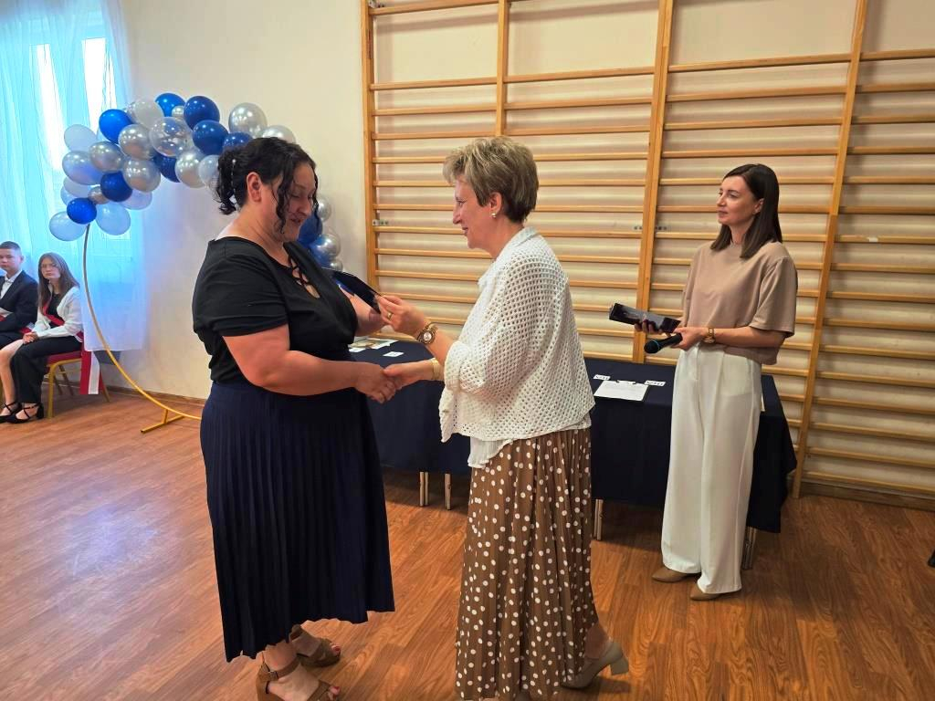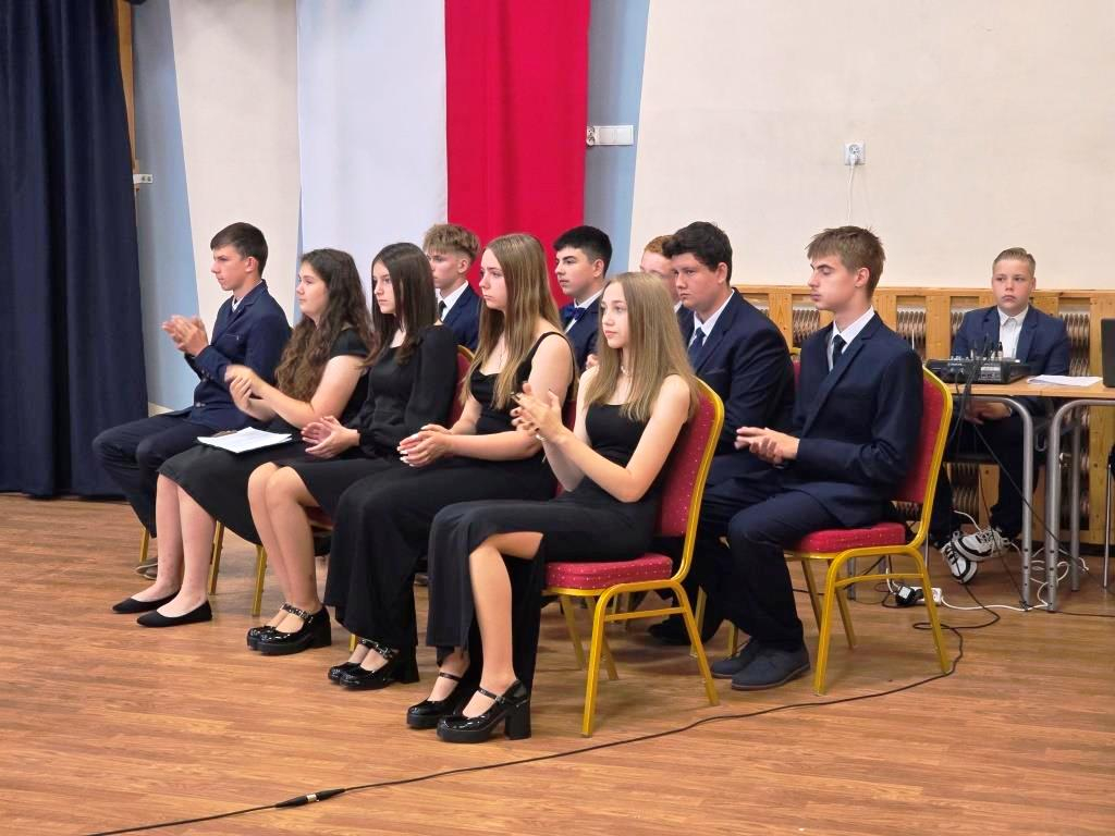 Podczas akademii głos zabrali zaproszeni goście oraz Pani Dyrektor, wyrażając wdzięczność za miniony rok wspólnej pracy i nauki. Wręczono podziękowania dla rodziców uczniów klasy VIII i przyjaciół szkoły za ich nieocenione wsparcie i zaangażowanie w życie placówki.