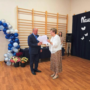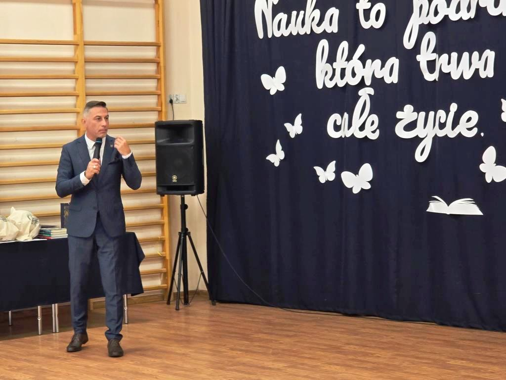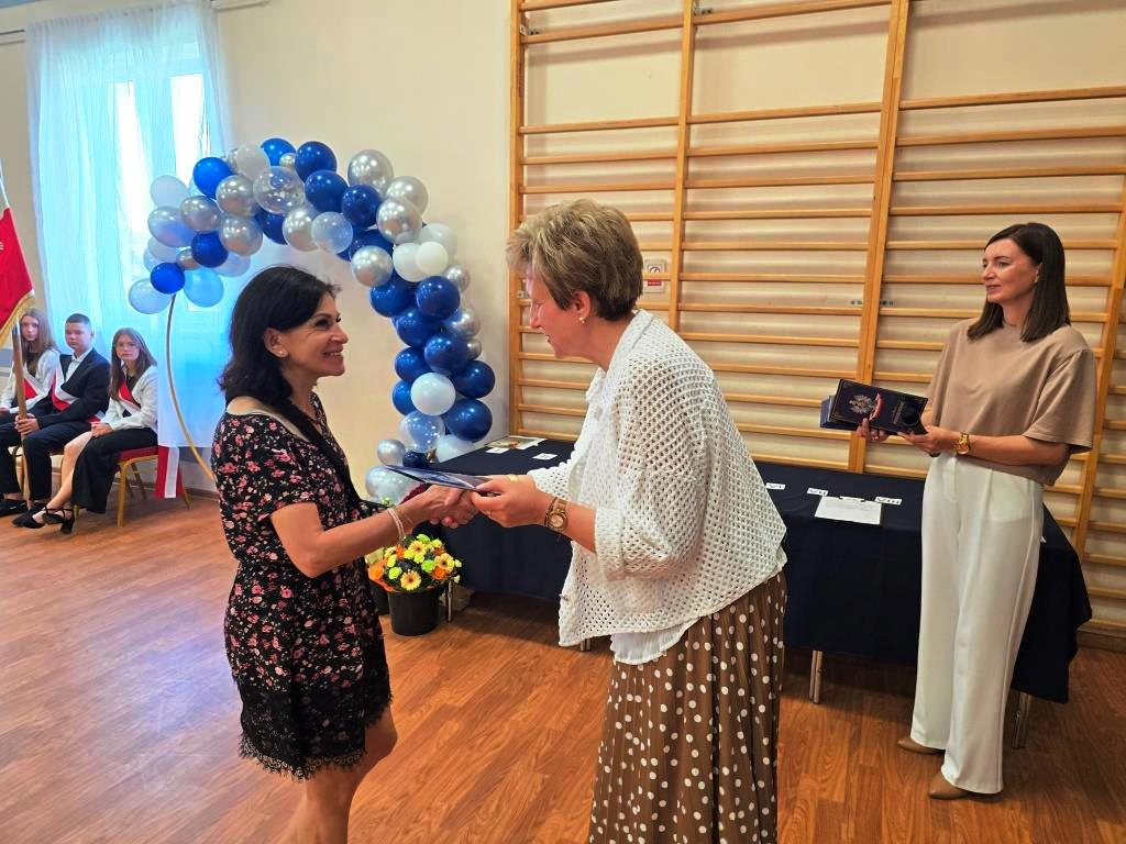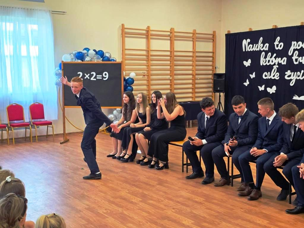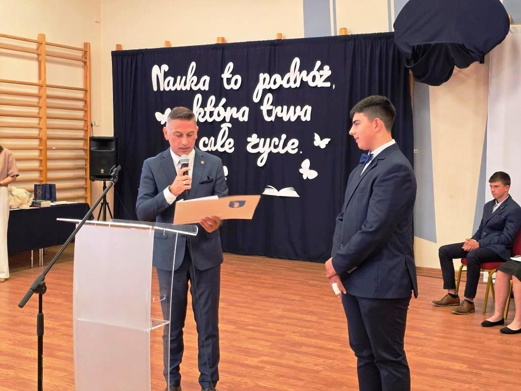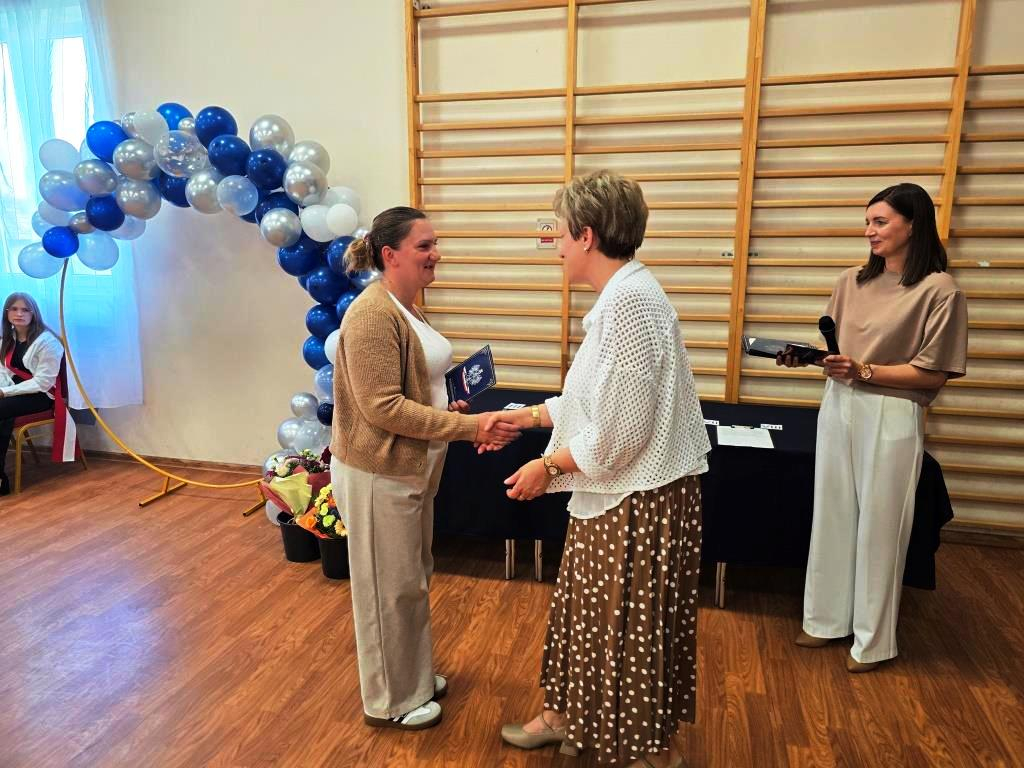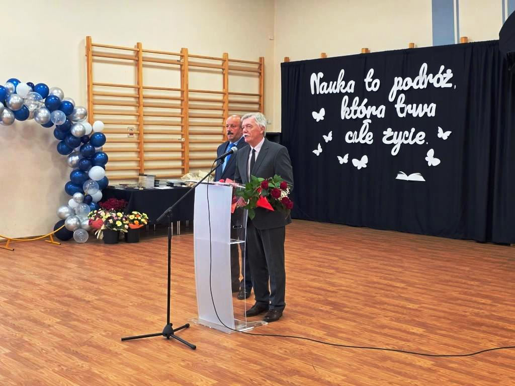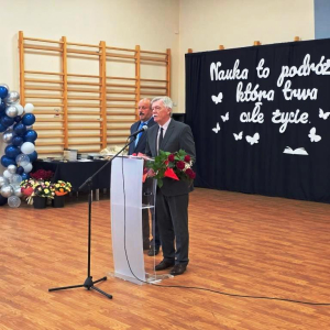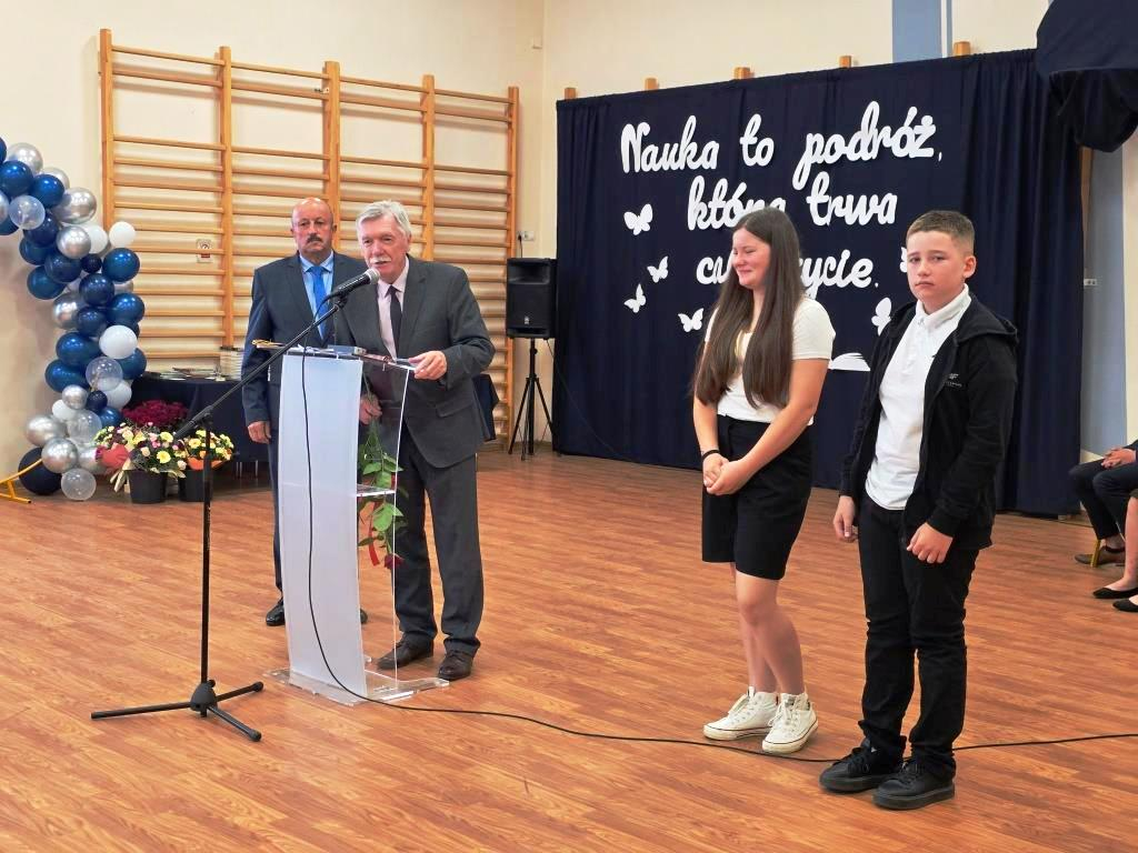 Podczas akademii głos zabrali zaproszeni goście oraz Pani Dyrektor, wyrażając wdzięczność za miniony rok wspólnej pracy i nauki. Wręczono podziękowania dla rodziców uczniów klasy VIII i przyjaciół szkoły za ich nieocenione wsparcie i zaangażowanie w życie placówki.