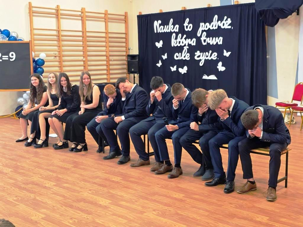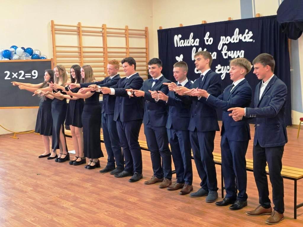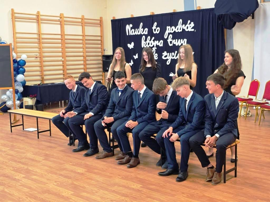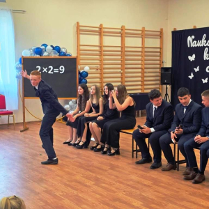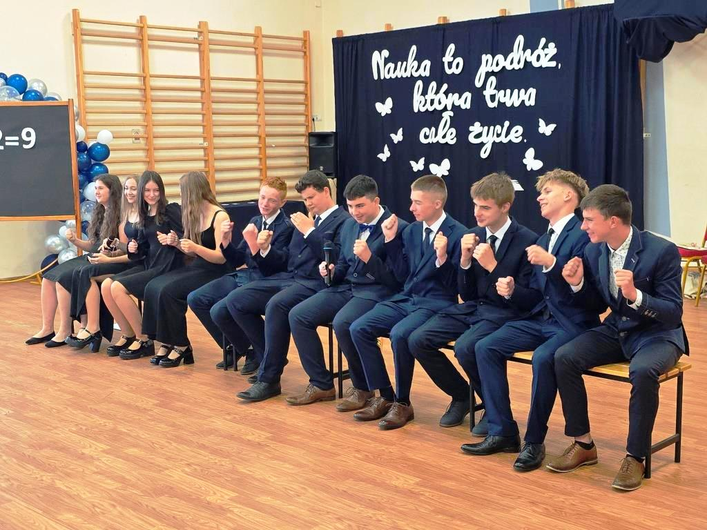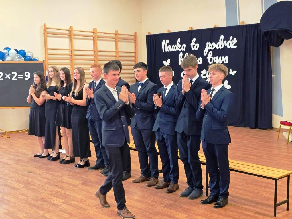 Tego dnia pożegnaliśmy także uczniów klasy VIII. Jedenastu z nich zakończyło swoją edukację w naszej szkole, stając się absolwentami Szkoły Podstawowej im. Marii Konopnickiej w Łąkiem. Tytuł Absolwenta Roku otrzymał Oskar Hulalka – serdeczne gratulacje!