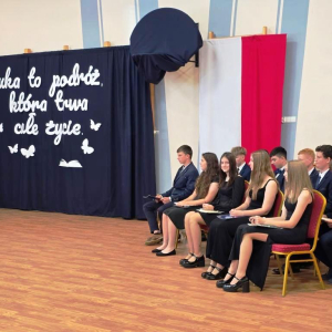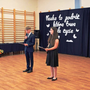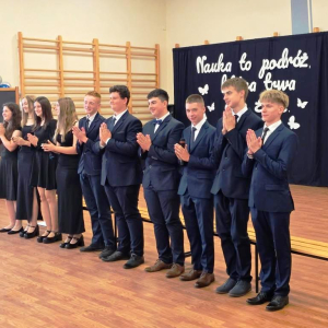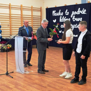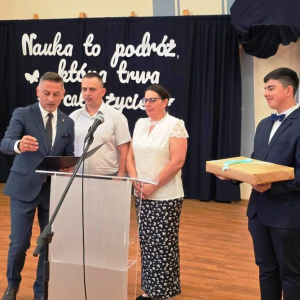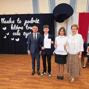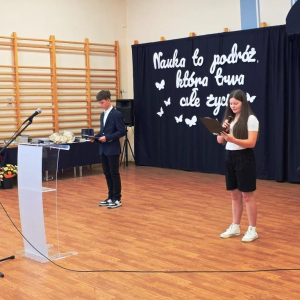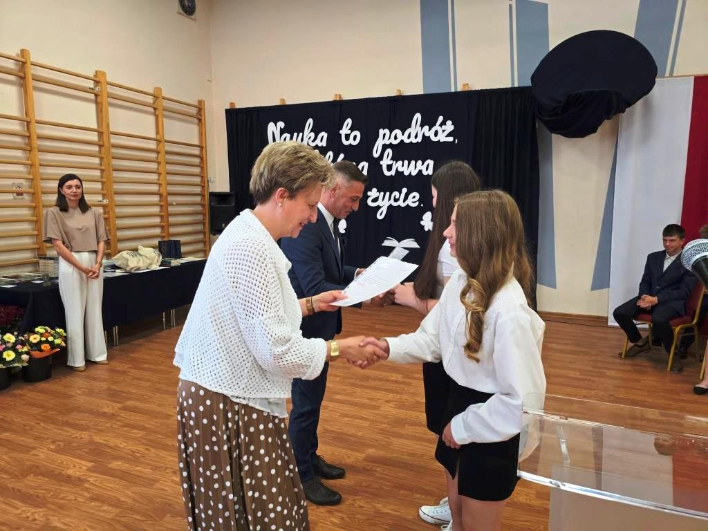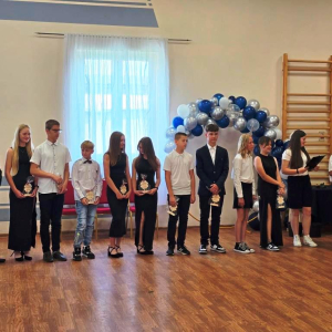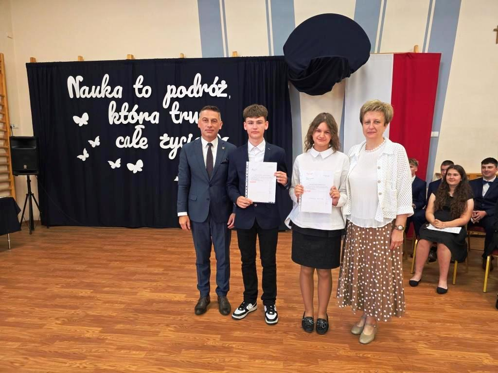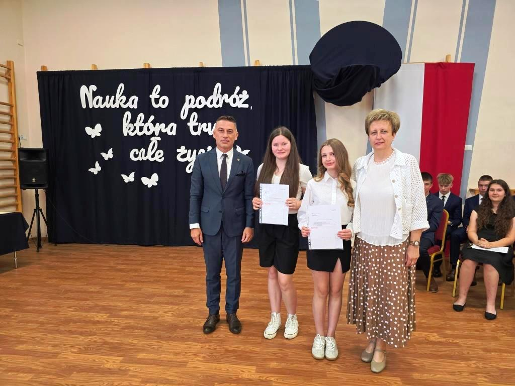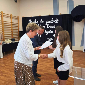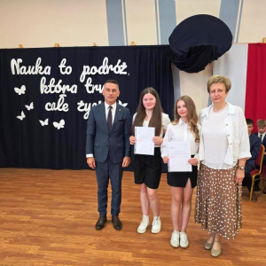 Świadectwa z czerwonym paskiem wręczono uczniom wyróżniającym się w nauce podczas uroczystości zakończenia roku szkolnego. Szczególne gratulacje należą się stypendystkom naukowym: Hannie Izydorczyk i Marcie Gdeczyk. Za wybitne osiągnięcia sportowe uhonorowani zostali Marianna Ziemkowska i Dominik Orwat.